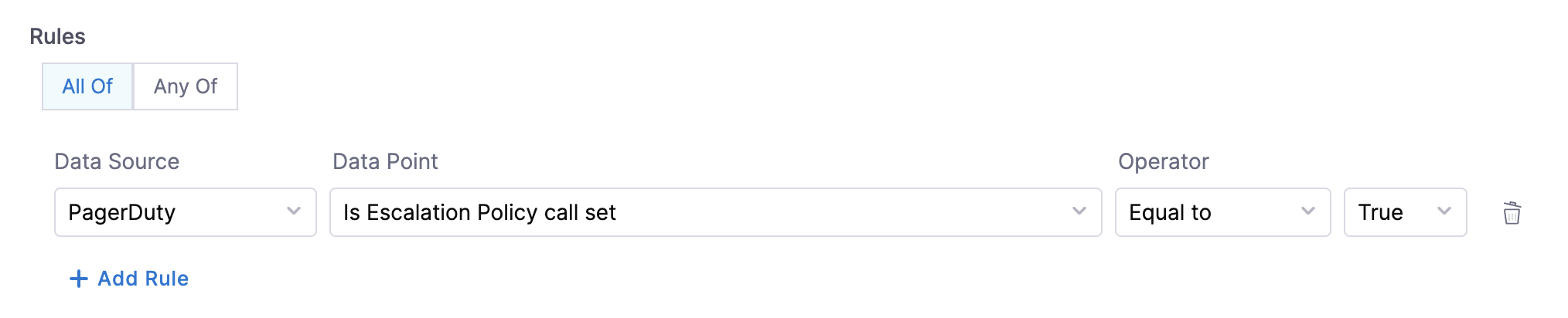 - Is Escalation Policy call - This data point can be used to create rules to check if the escalation policy is set for a given service.